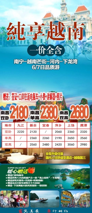 以下是越南,桂林,三峡,湖南部分旅游行程