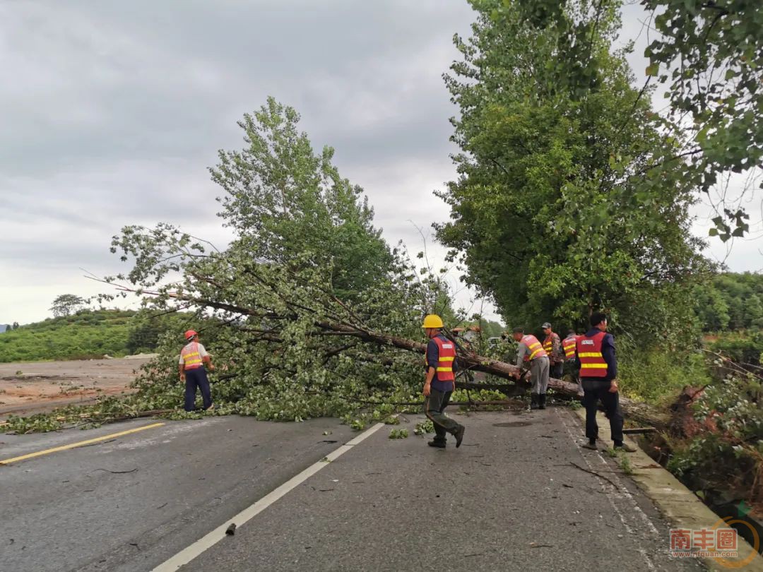 “ 由于大风天气,206国道白舍路段出现大树倒伏,共有15处,我们立即组织应急抢险小分队15名队员紧急进行路面清障,确保道路安全畅通。”抚州市公路局南丰分局工作人员梁泉明告诉记者。