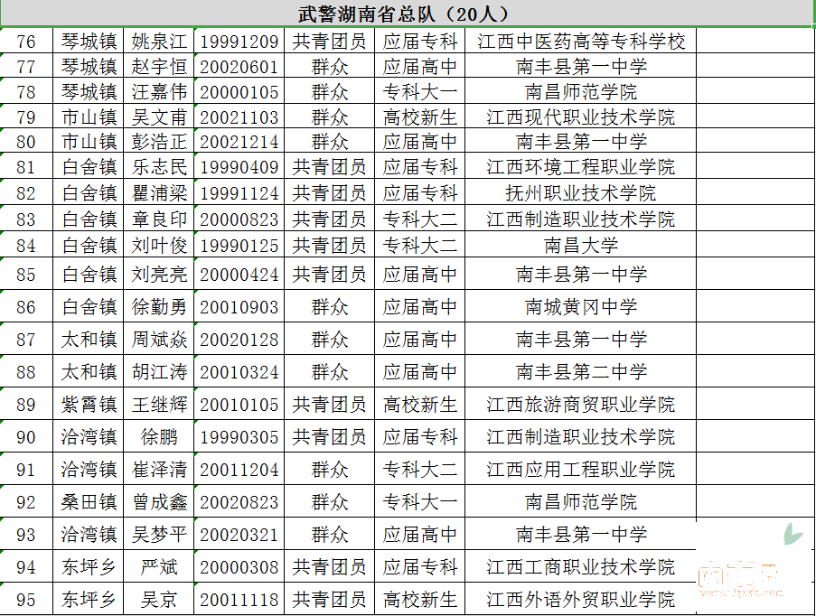 南丰县2020年新兵定兵名单公示