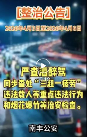 @南丰人 今起至六日,这些路段将开展酒驾醉驾专项整治!