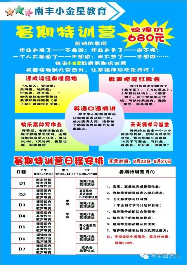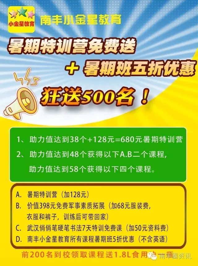 D、 南丰小金星教育所有课程暑期班5折优惠(不含英语)