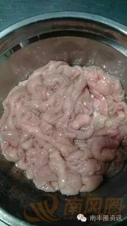 1.去净小肠内外的油脂和粘膜,用清水加一点精盐洗净,沥干水分。